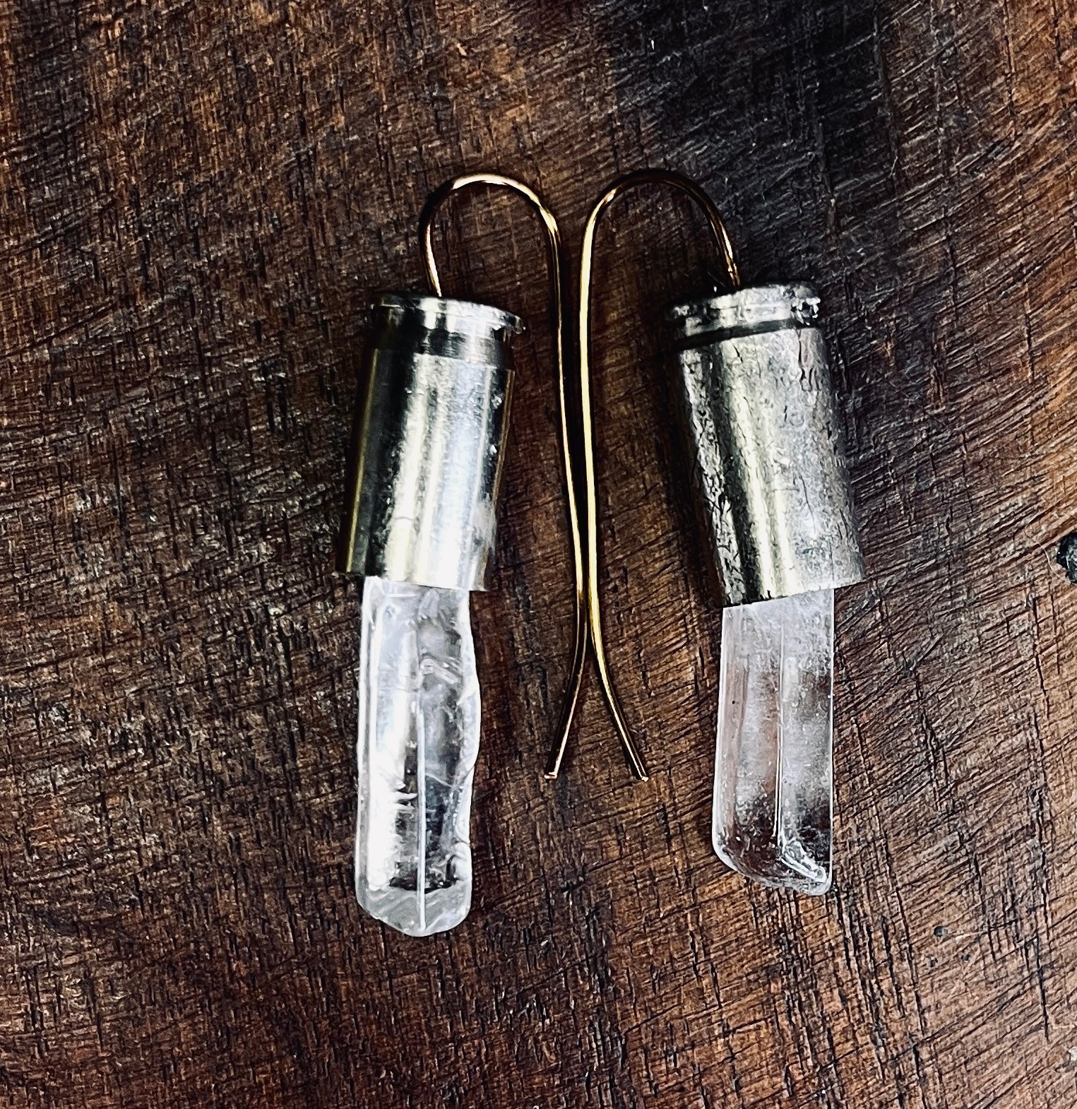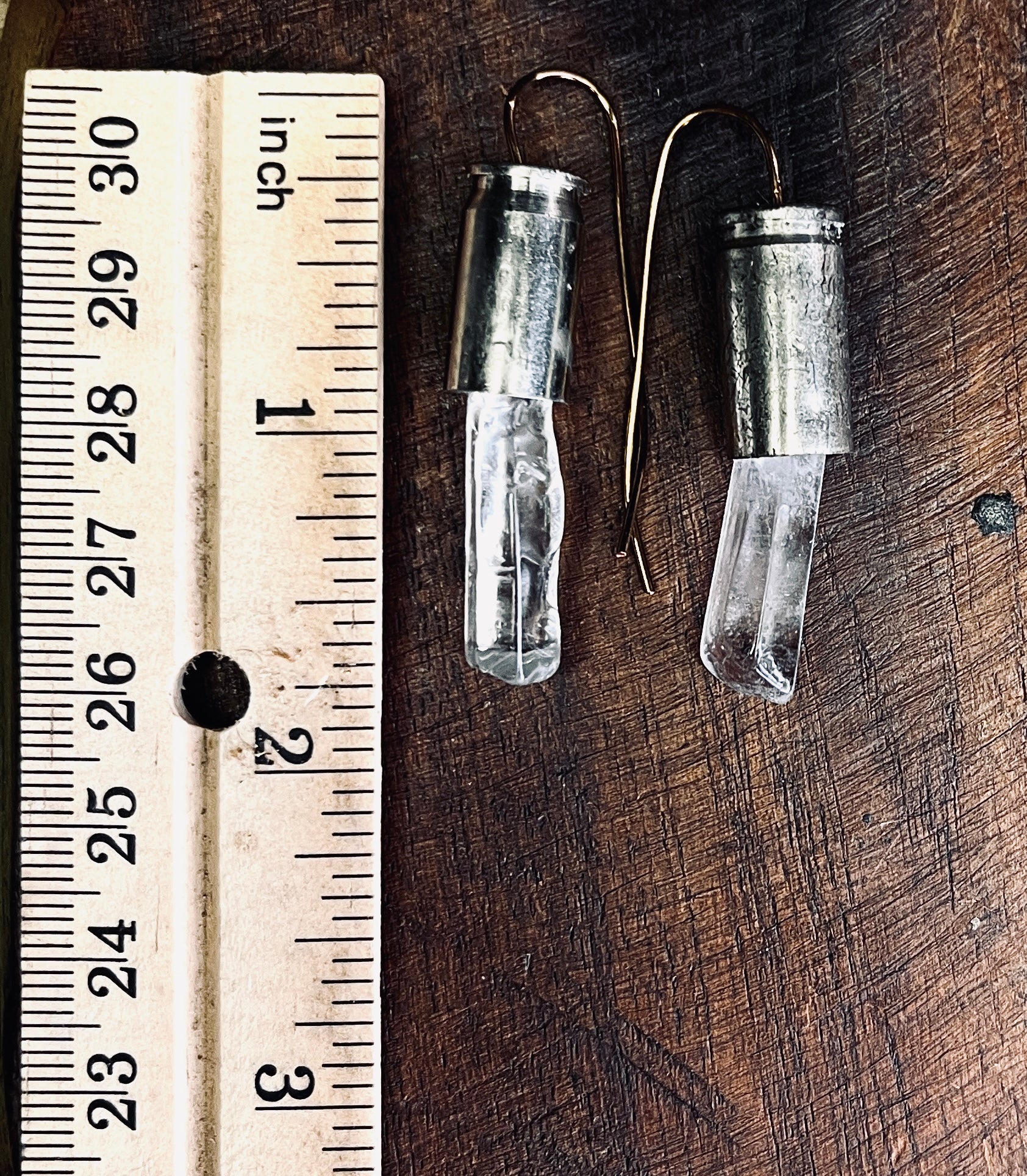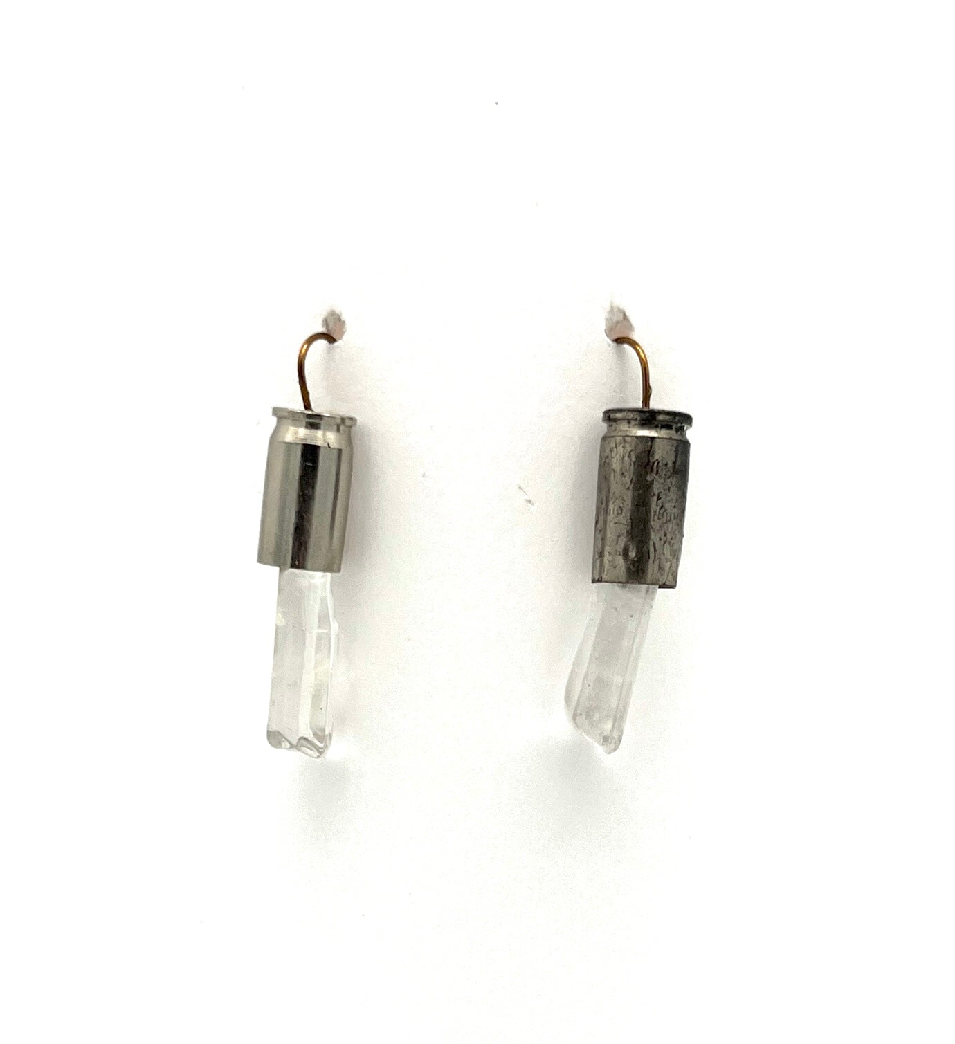 Bulletproof Clarity Earrings. 1.75" Stainless bullet casings + Quartz Crystals